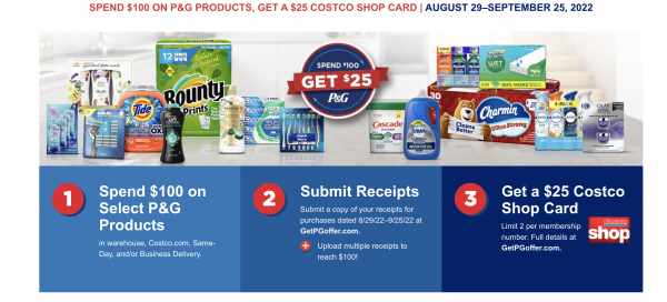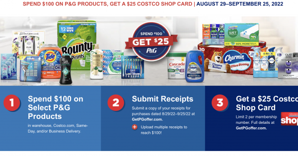 2022年9月 Costco P&G品牌大促 满$100 送$25礼品卡
