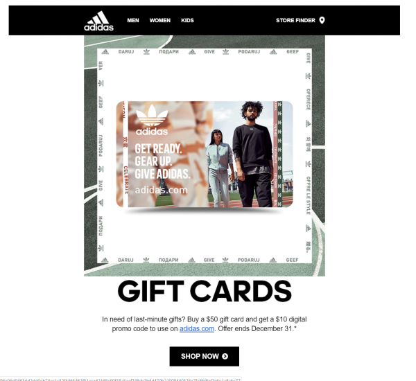 网站折扣 美国免费/省钱攻略 美国生活实用优惠 Adidas 礼品卡买$50送$10 2019年12月21日2022年9月3日 小编4号 0 Comments 优惠, 打折, 购物 adidas 官网购买礼品卡买$50送$10不限次数购买,活动截止12/31.活动链接