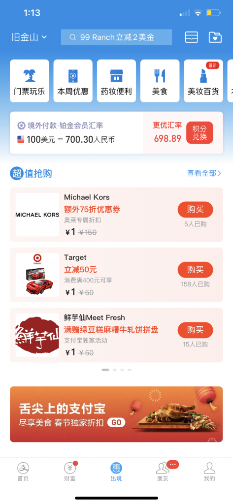 支付宝境外优惠券免费领取