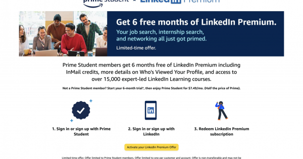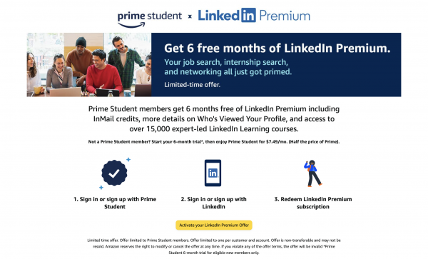 Amazon 学生primer会员福利棒棒的,免费送6个月的linkedin会员,和Grubhub会员,既帮助你快速找到工作,又在吃上面送福利,现在新加入的primer的学生账号免费送6个月primer会员,诚意满满,新用户点击链接注册额外再送$5