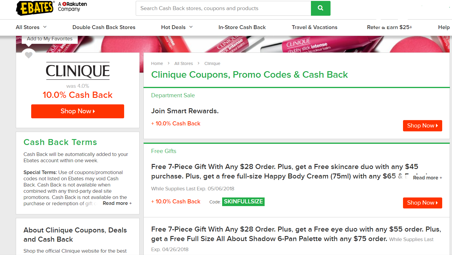 APP网络打折 网站折扣 返利网 倩碧间接9折满$28送七件套大礼包 2018年4月25日2022年9月3日 小编4号 0 Comments Clinique,购物,返利, ebates 通过ebates链接进入倩碧购物10% cashback,并且使用优惠券满$28送7件套。Ebates新用户点击链接进入首次送$30.