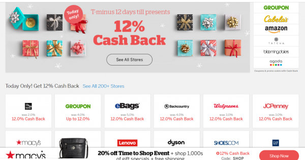 返利网 Macy’s,Nike 等多家店8.8折 2019年12月13日2022年9月3日 小编4号 0 Comments 购物, 返利 Ebates今天双十二活动,近百家店12%返现,相当于8.8折,只限今天,点击链接进入