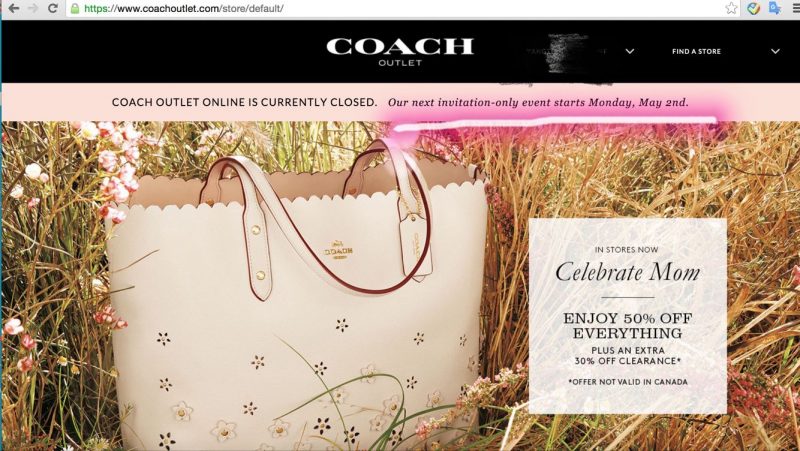 今天给大家介绍一下coach outlet的官网,有好多朋友不知道这个网站,网站网址 点击链接进去,这个网址不是一直开放,每个月开放2-3次,时间都会在网站上公布。这个网站上的东西也比较全,店里有的网站上都会有,还有一些店里没有的款式,一般满200刀包邮,不过有时候会有活动,免运费。sale区的产品抢的比较快,一般网站开放半小时,一些sale区的都被抢光,教大家一个方法,看到喜欢的可以先加入购物车,会保留15分钟。