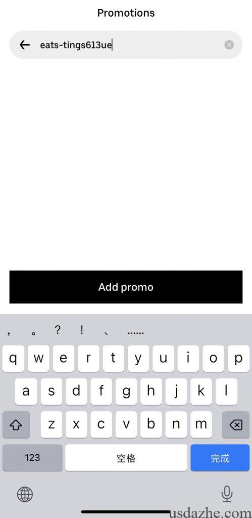 注册成功后进入APP,点击右下角account再点击Promotions,然后输入优惠码:eats-tings613ue,优惠券就会添加到你的账户里面了。