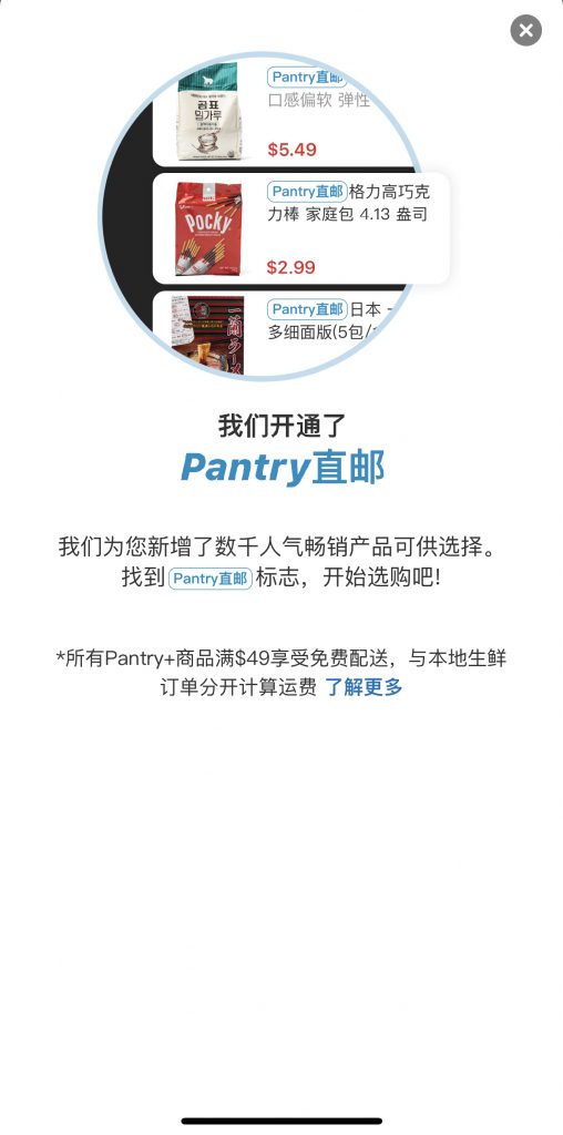 现在weee 的服务也越来越广了,而且好消息是weee像亚米网一样,生活用品、零食、化妆品等可以邮寄全美,可以邮寄全美上面都有pantry标识。满$49包邮