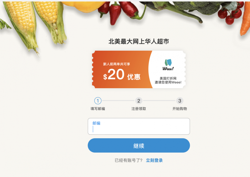 weee新用户优惠升级,从原来的$10升级到$20,满$35就包邮,两张满$35减$10最快隔天送达,必须通过此链接注册的新用户,注册链接